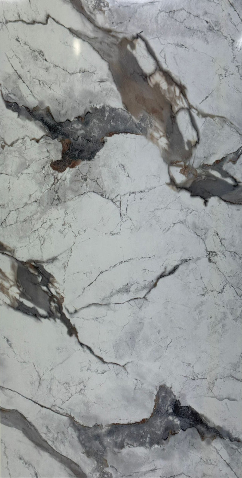 - Dekor: Weiss-graue Marmoroptik mit dunkelgrauen und braunen Strukturen